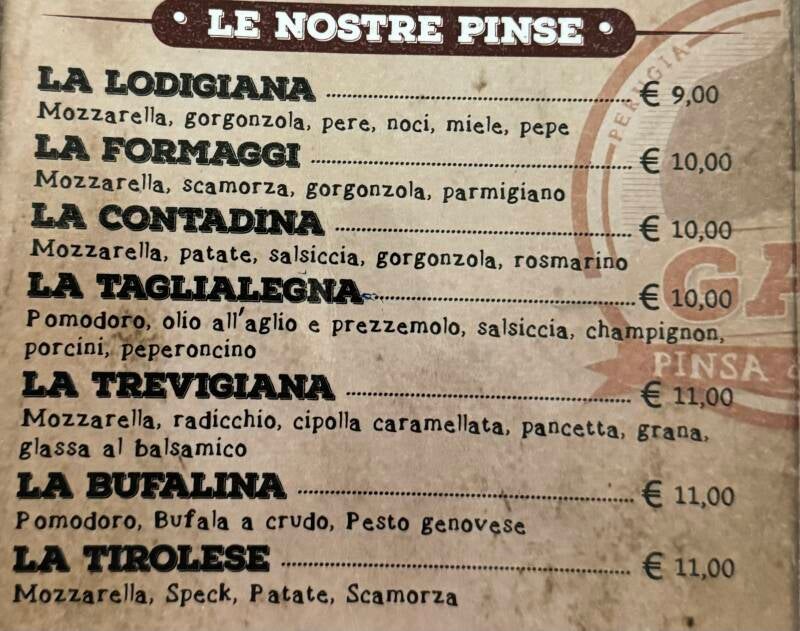 Da noi hai il controllo completo sulla tua pinsa. Scegli i tuoi condimenti preferiti e crea un'opera d'arte culinaria su misura per te. Dai un'occhiata alle opzioni nel nostro menu e componi la tua pinsa perfetta.